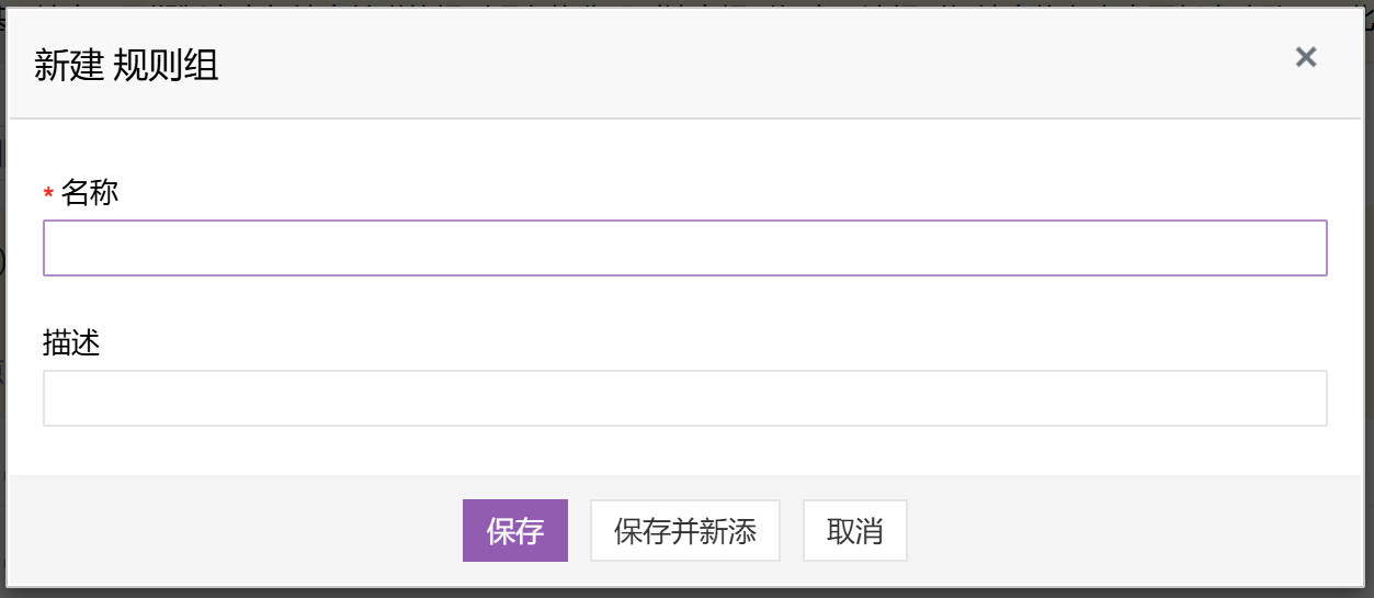 要创建新组,请单击规则组。 在显示的页面上,提供名称和描述,然后单击添加。