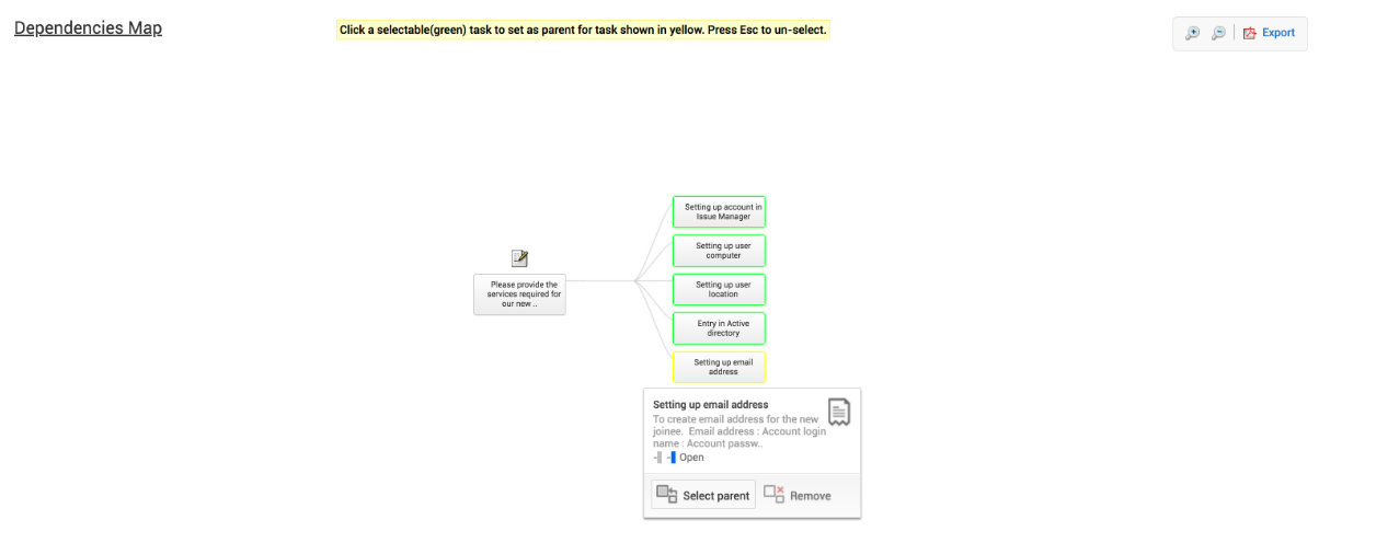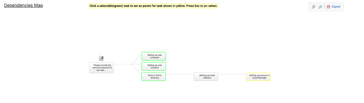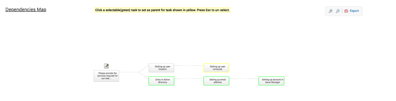 通过使用任务依赖关系映射,可以对请求中要执行的任务进行排序。在依赖任务关闭之前,依赖映射会限制用户关闭任务。任务依赖关系非常重要,因为有时一个任务的结果将影响下一个任务的输入内容。
