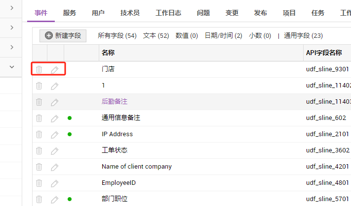 要编辑或删除附加字段,请单击列表视图中字段名称旁边的相关图标。