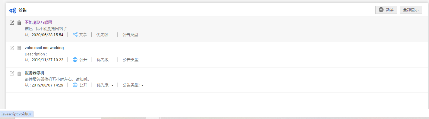 此外,您也可以在小工具或列表视图中点击公告旁的相应图标,编辑或删除公告。