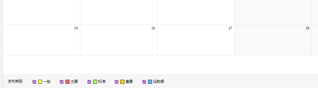 您可以过滤日历视图,根据类型显示或隐藏发布信息。为此,请根据需要在日历页脚栏上选择/取消选择类型。