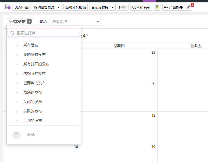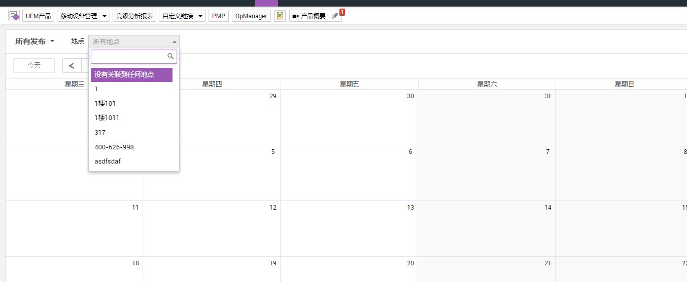 您可以过滤日历视图,根据与发布相关联的地点来显示或隐藏发布。为此,请使用地点过滤器下拉菜单选择您所需的过滤器。
