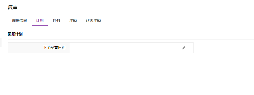 在计划子标签中,单击下个复审日期旁边的