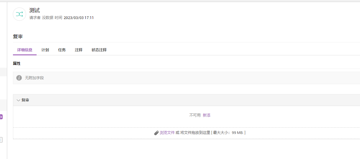- 复审 - 详细记录复审过程。您可以上传相关文档作为附件。您还可以从工具栏上的动作菜单更新相关详细信息。