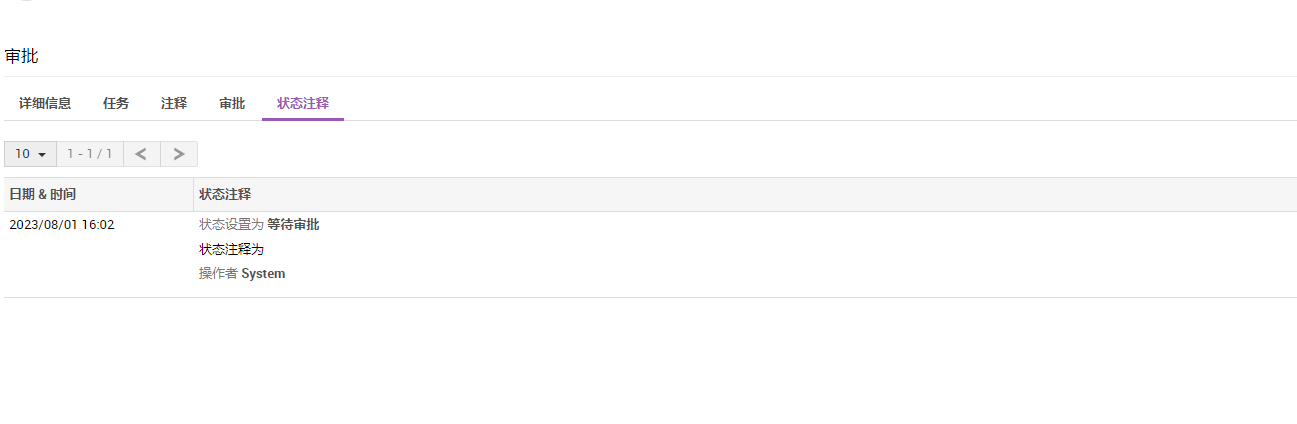 查看审批阶段变更的状态转换,以及在转换过程中添加的注释。