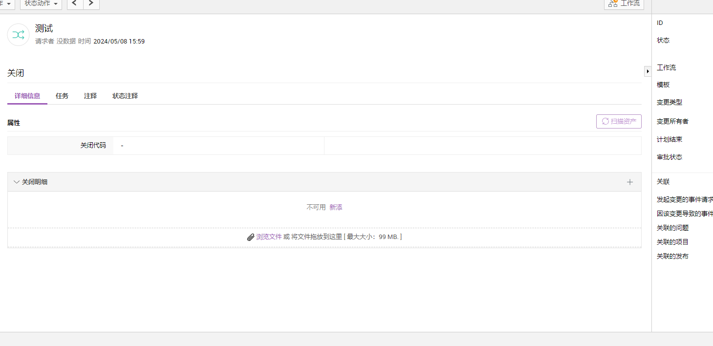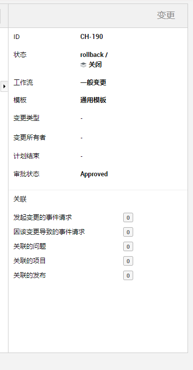 右侧面板 -概述变更的基本细节,帮助您评估变更,而无需查看每个细节。您可以在右侧窗格中即时更新变更状态和所有者。