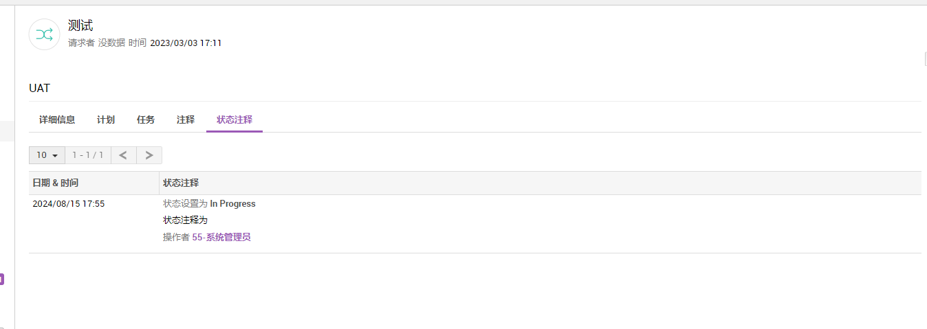 查看 UAT 阶段变更的状态转换,以及在转换过程中添加的注释。