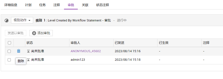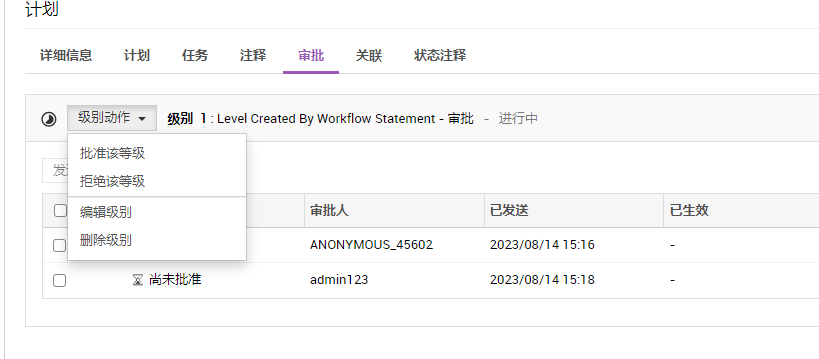 如果没有通过工作流将审批节点与规划阶段关联,则不会显示 "审批 "子标签。