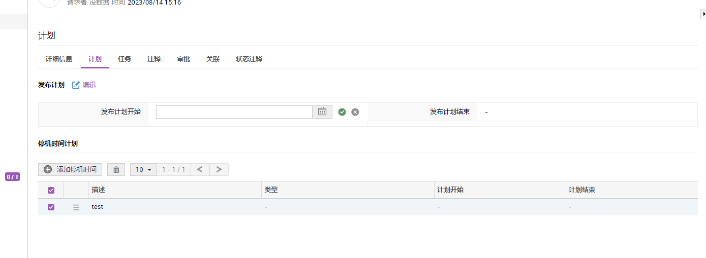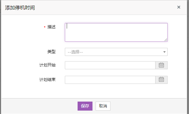 - 输入计划开始和结束停机的时间。