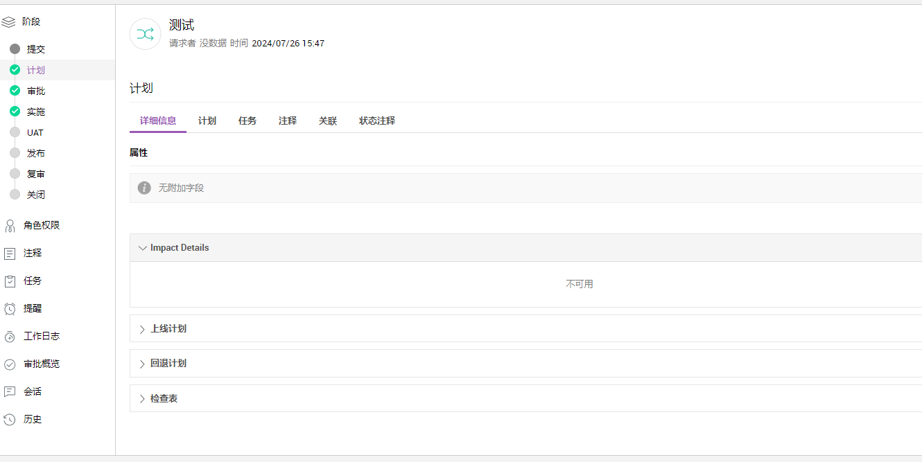 在变更请求跨越计划阶段后,提交阶段的详细信息将无法编辑。
