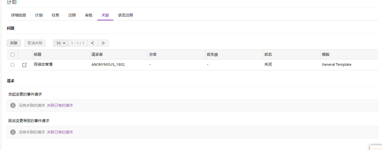 关联导致变更的问题或请求。也可以关联因变更而创建的请求。