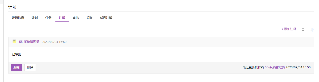 - 单击注释上的编辑修改注释内容。您只能编辑自己添加的注释。