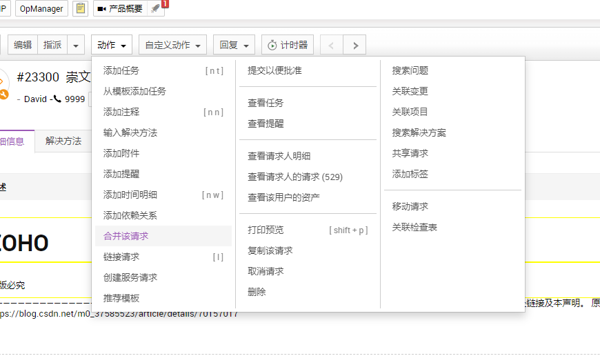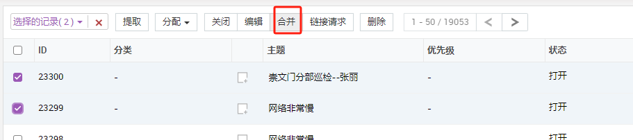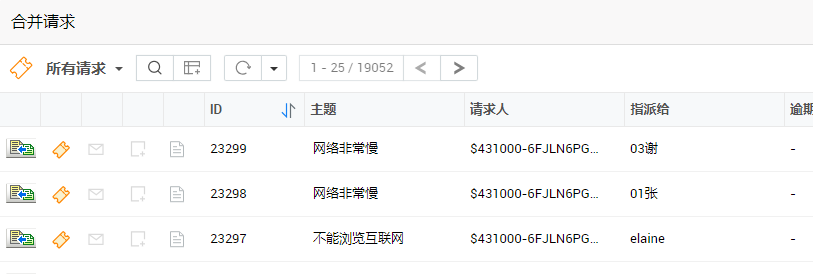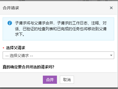 父请求: 当您合并两个或多个请求时,系统会要求您选择一个请求作为父请求。其他请求将与父请求合并,并作为对话线程添加到父请求中。