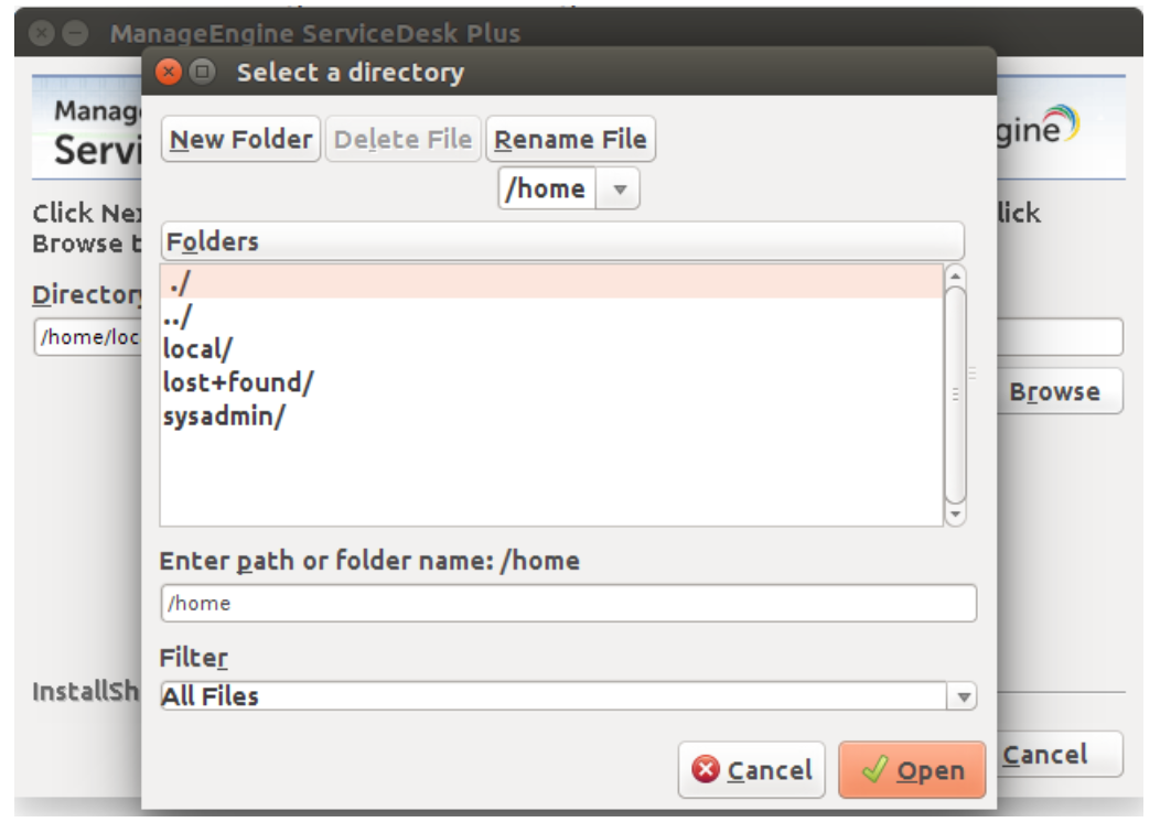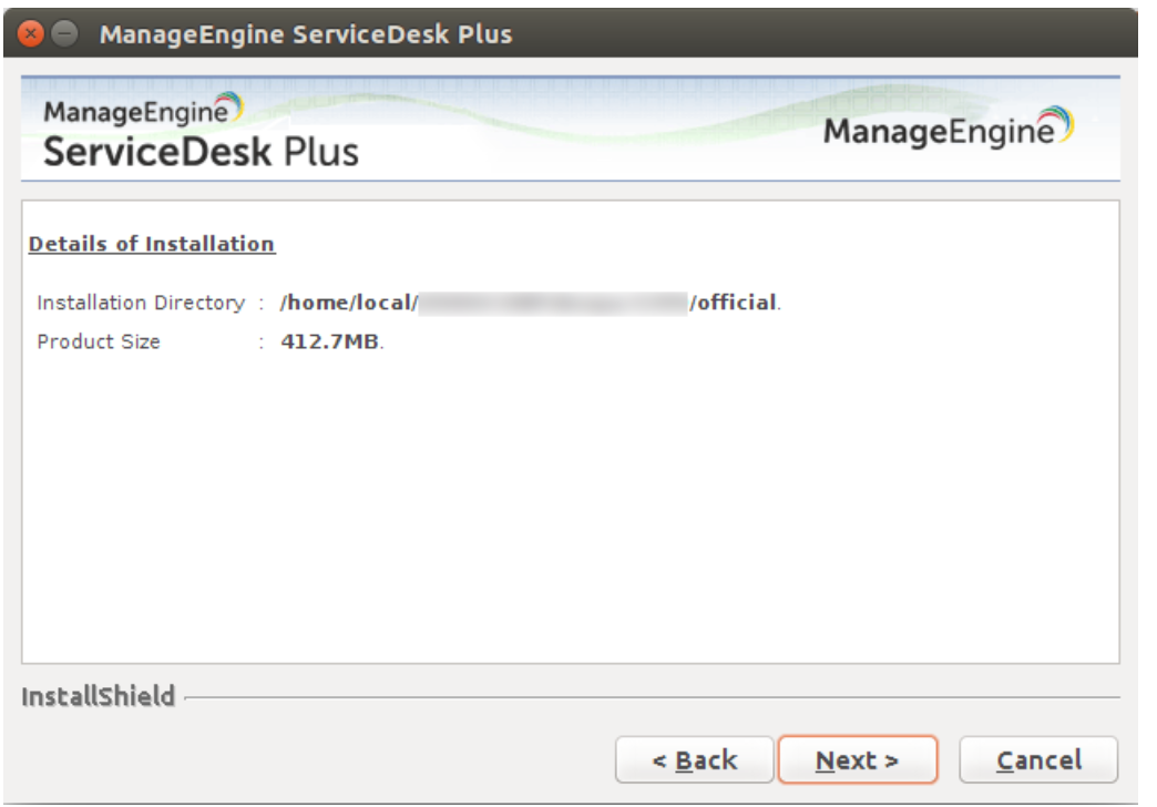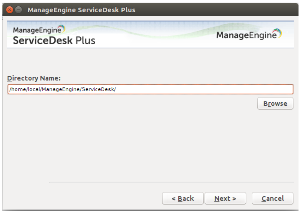 默认情况下,该应用程序安装在 home/<user>/ManageEngine/ServiceDesk 目录下。