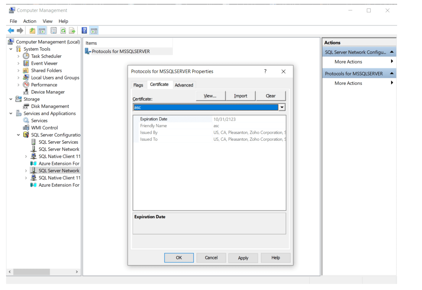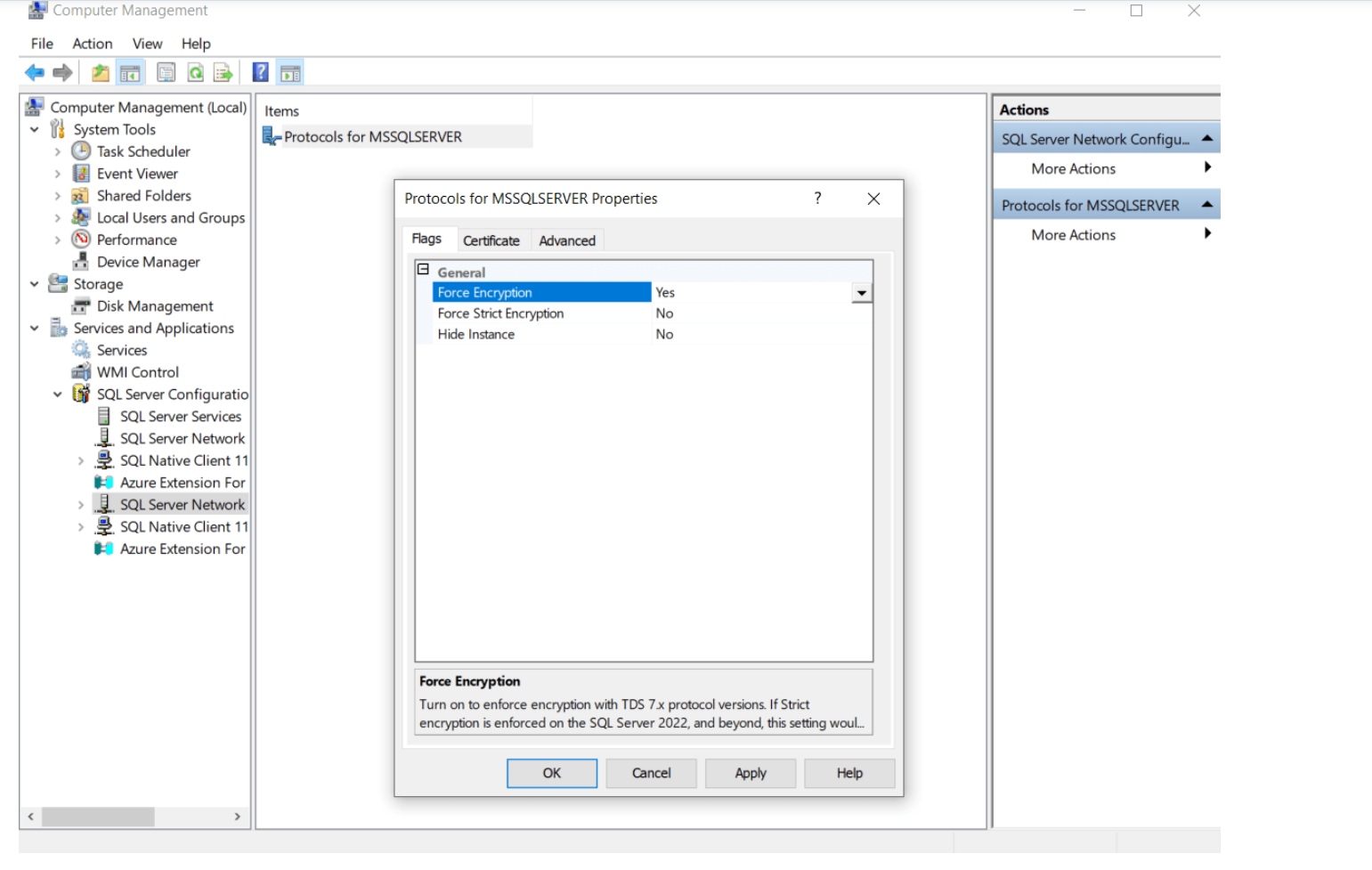 以下是在 MSSQL 中启用 SSL 连接的基本步骤。 有关 SSL 连接的更多信息,请参考此处。