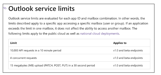 由于 Microsoft Graph API 采用了严格的节流策略,当 Microsoft Graph 协议用于发送电子邮件时,ServiceDesk Plus 会受到一定的限制。
