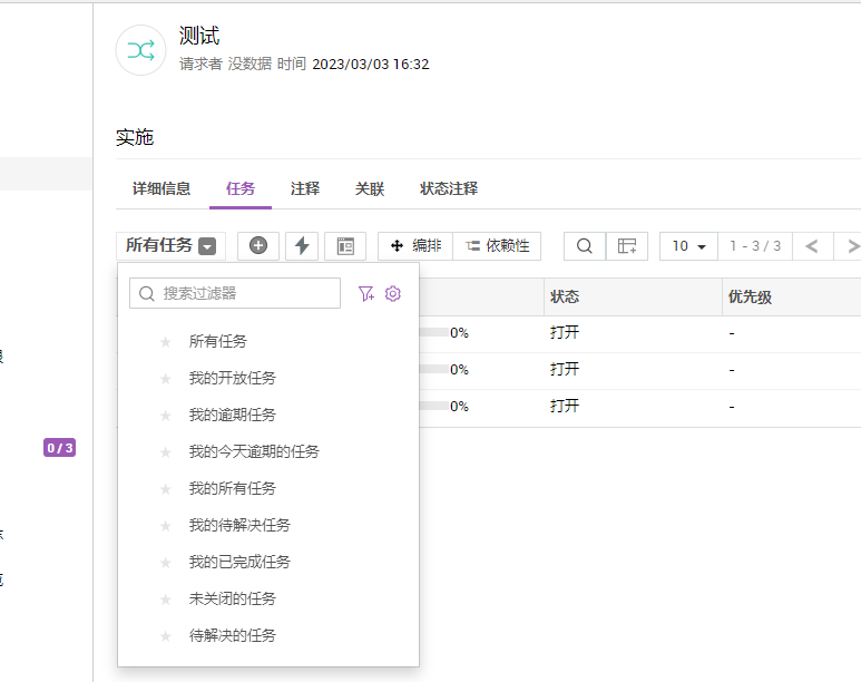 过滤任务:使用左上角的下拉式过滤器,根据特定条件显示任务。您还可以