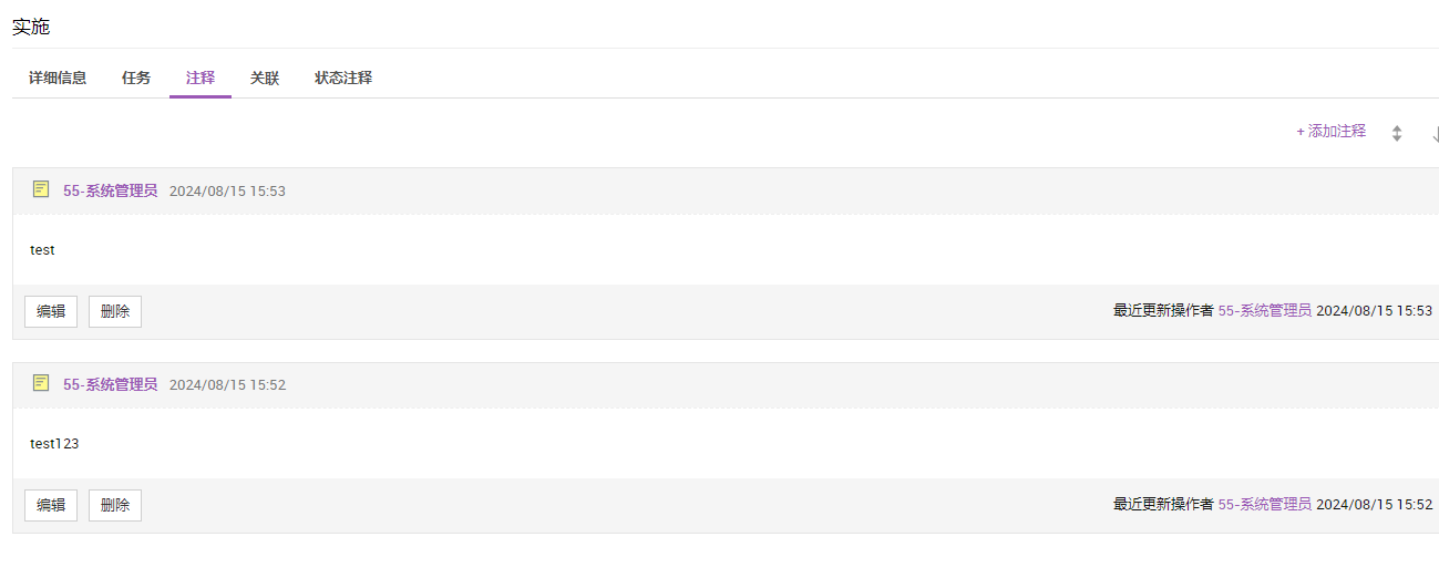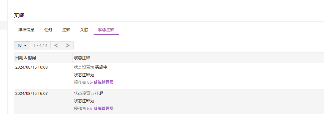 查看实施阶段变更的状态转换,以及在转换过程中添加的注释。