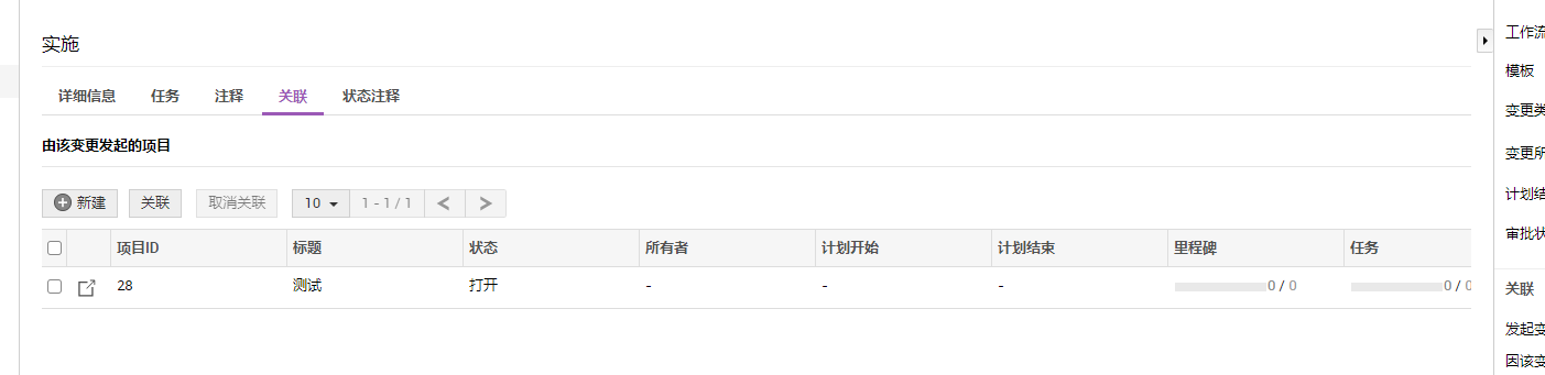 关联用于管理变更部署下的项目。