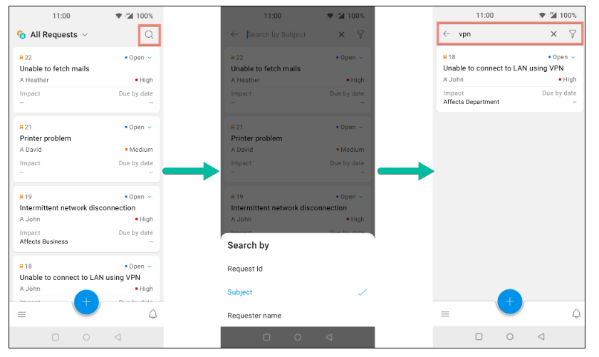 通过 Android 版 ServiceDesk Plus Cloud,技术人员可以管理服务台工单、任务、资产、审批和解决方案。通过仪表板,技术人员可以跟踪服务台的公告和关键指标。推送通知可帮助技术人员随时了解各种服务台事件和活动。