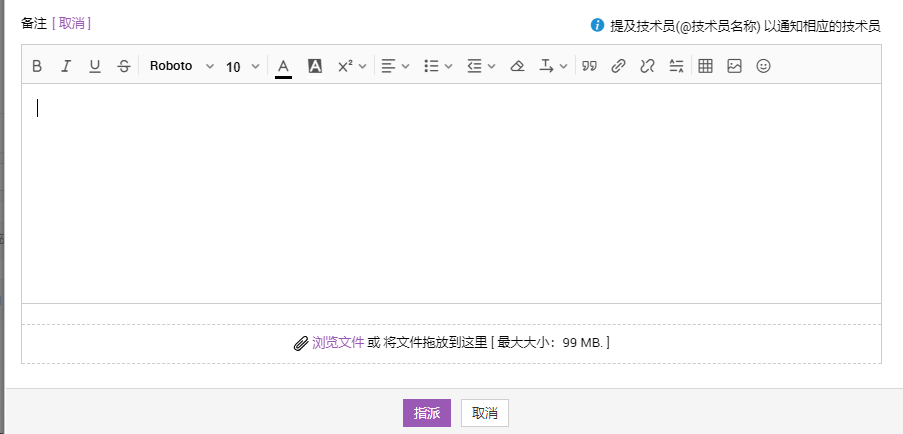 - 指派技术人员后,您可能需要为请求添加其他信息。为此,请单击添加备注并输入所需信息,如下所示:
