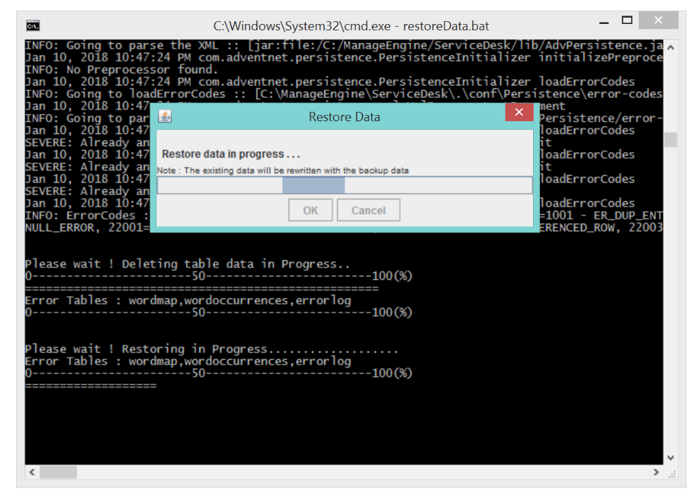 C:\ManageEngine\ServiceDesk\bin\restoreData.bat