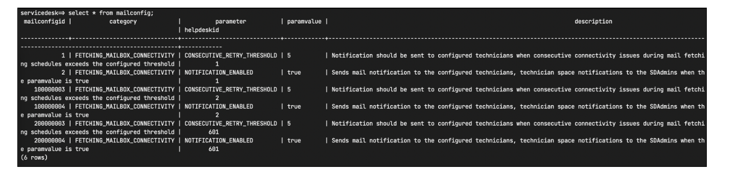 执行该查询后,将返回所有门户 ID。选择需要运行更新查询的门户 ID,并将更新查询中的 <helpdeskid> 替换为该门户 ID。重新启动应用程序,使更新的查询生效。