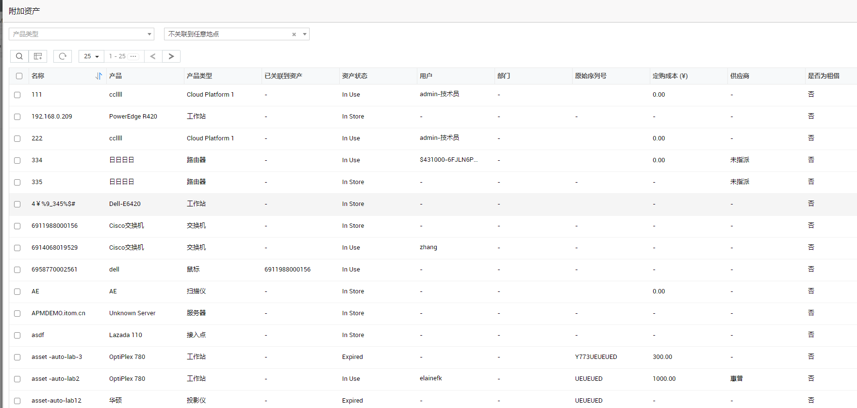 例如,如果选择的地点是纽约,资产类型是接入点,则会列出与纽约地点相关的所有接入点。