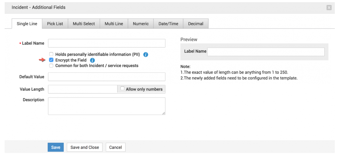 注意:加密选项仅在添加附加字段时可用。 编辑附加字段时无法对字段进行加密。 此外,字段一旦标记为加密,就无法取消标记。