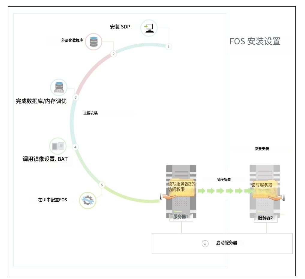 - 两个具有不同网卡地址的虚拟或物理服务器用于设置 FOS。
