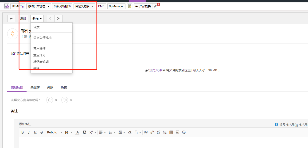除查看解决方案详细信息外,您还可以使用工具栏上的编辑按钮和动作菜单执行多项操作。