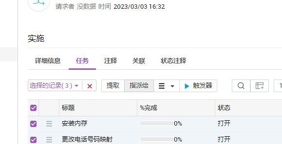 要指派标记的任务,请选择任务并单击工具栏上的 "触发"。
