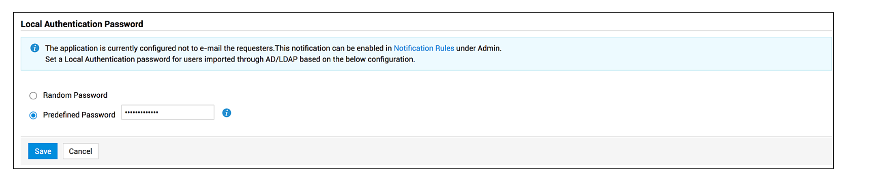 为 AD 导入的用户设置的本地验证密码也适用于通过 LDAP 和 CSV 文件导入的用户。