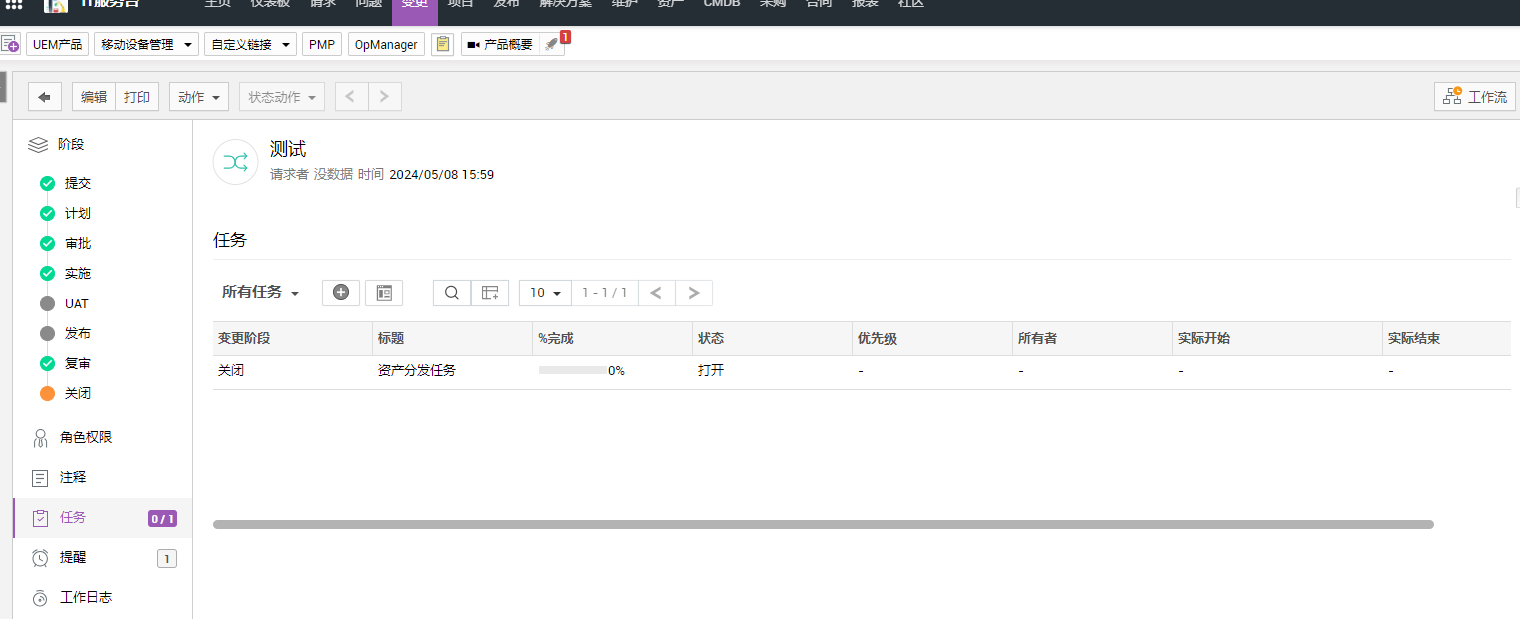 您可以在变更阶段立即创建任务,并将其分配给技术人员。