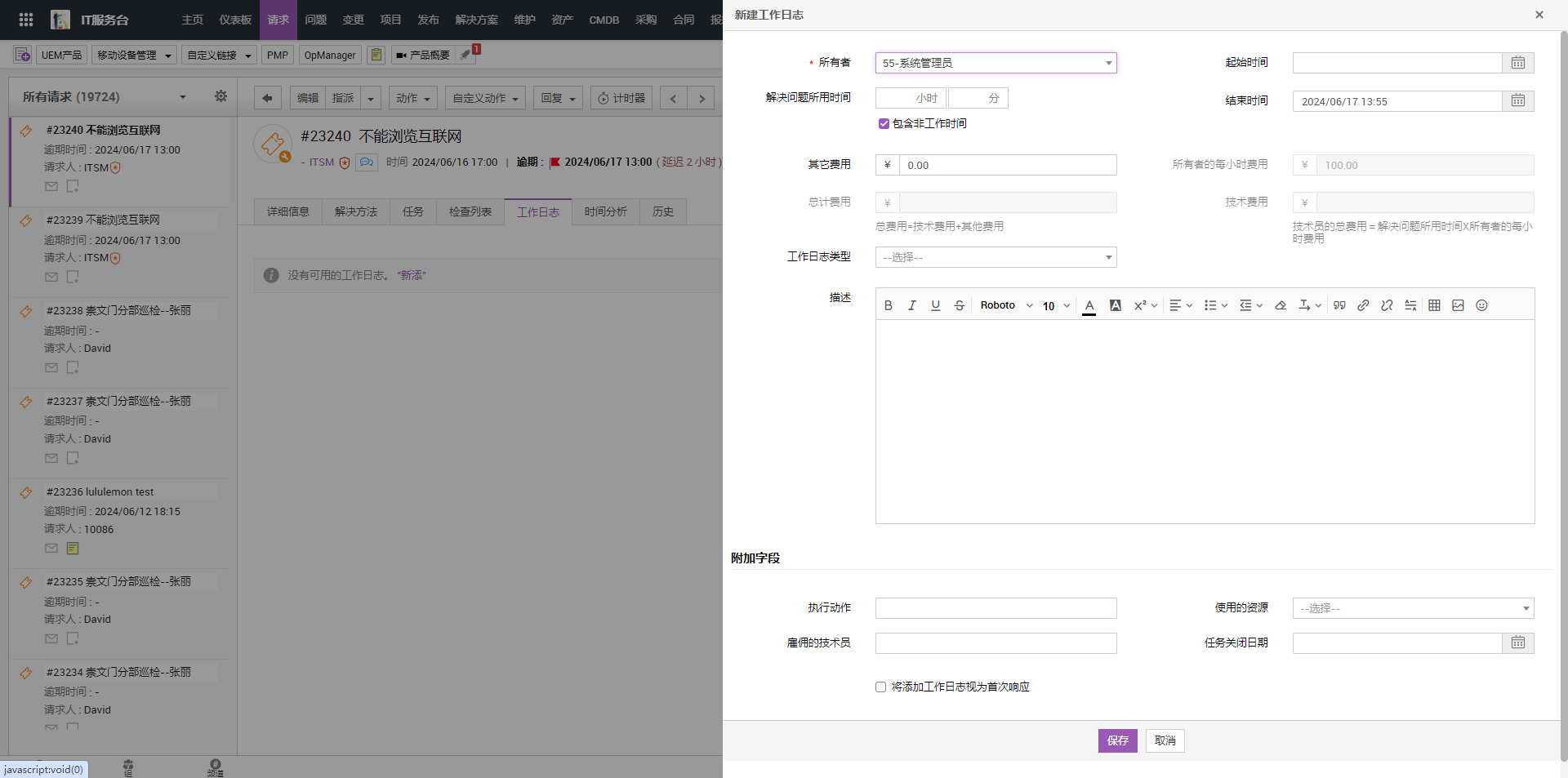 工作日志有助于管理员随时了解技术人员对不同请求的工作状态。