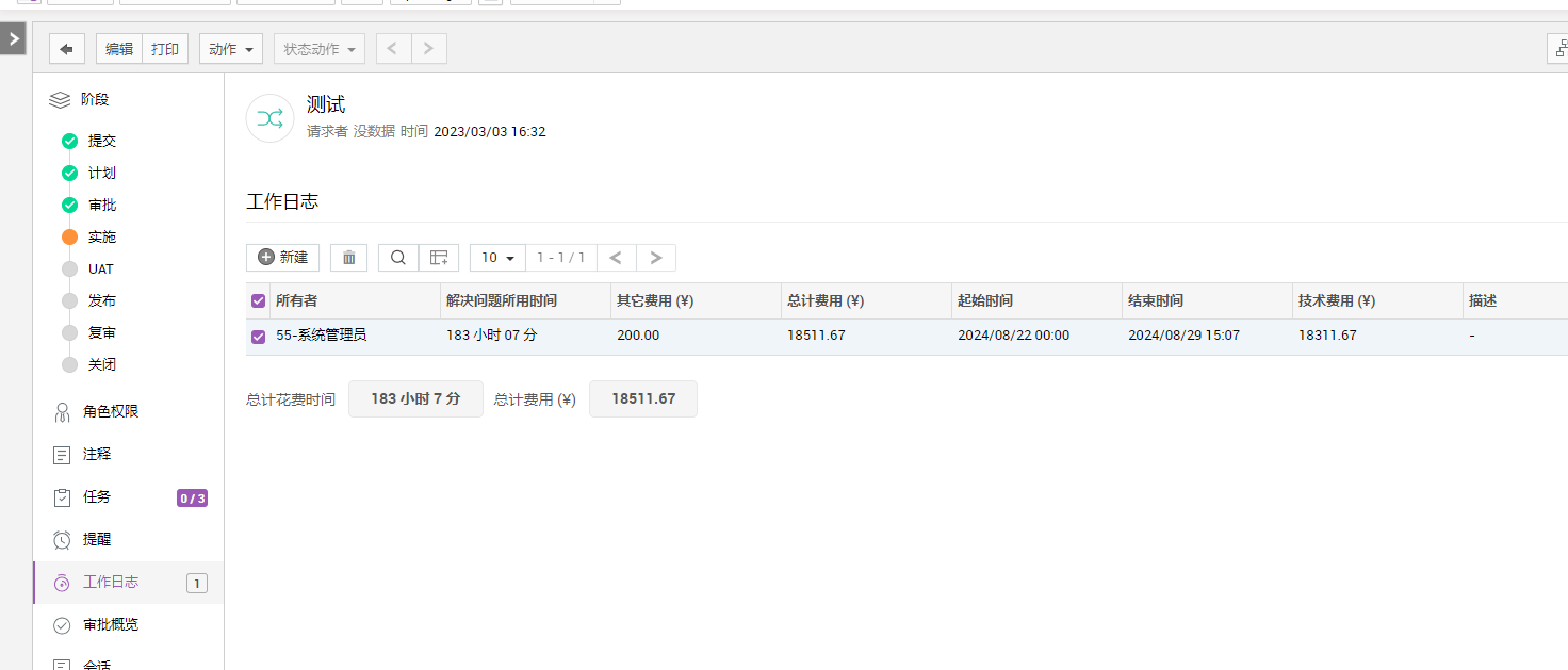 工作日志允许技术人员记录他们在变更请求上花费的时间和产生的成本。这些信息有助于企业付款、评估生产率和做出业务决策。