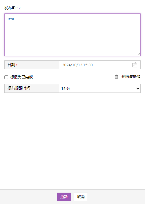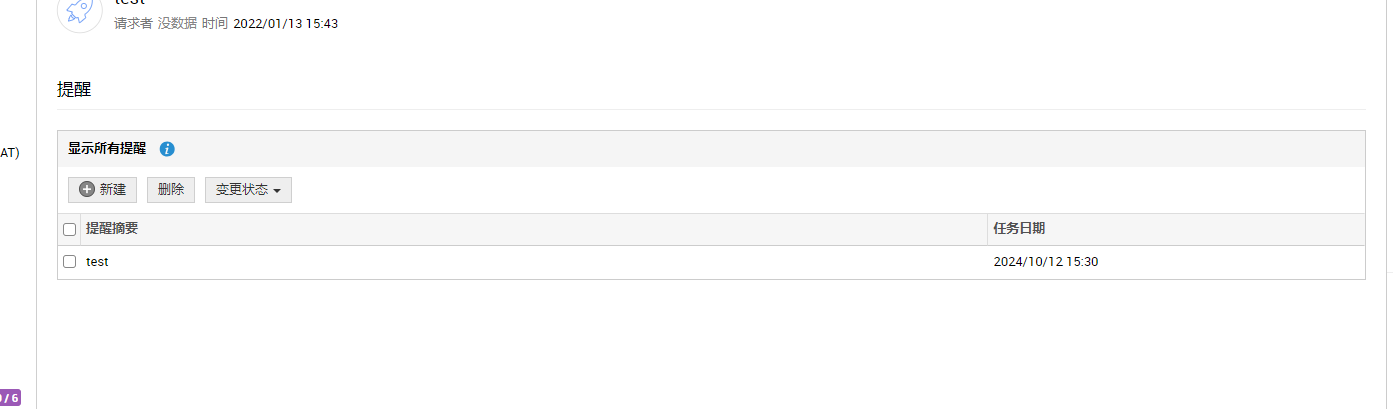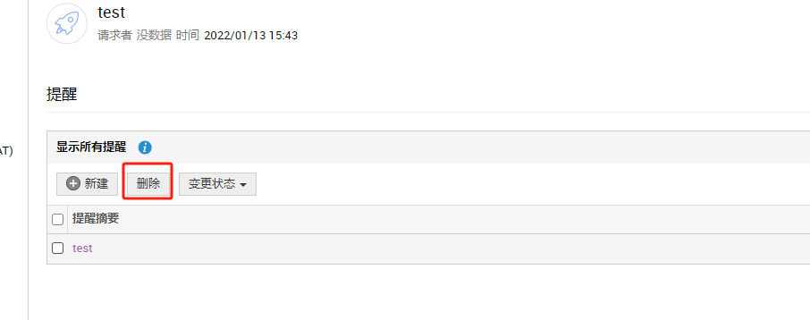 添加到发布请求中的所有提醒都将列在 “提醒 ”部分。在这里,您还可以编辑、变更状态或删除提醒。