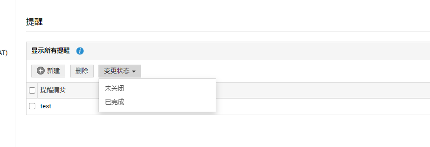 要变更提醒事项的状态,请选择提醒事项,然后从变更状态下拉菜单中选择未关闭或已完成。