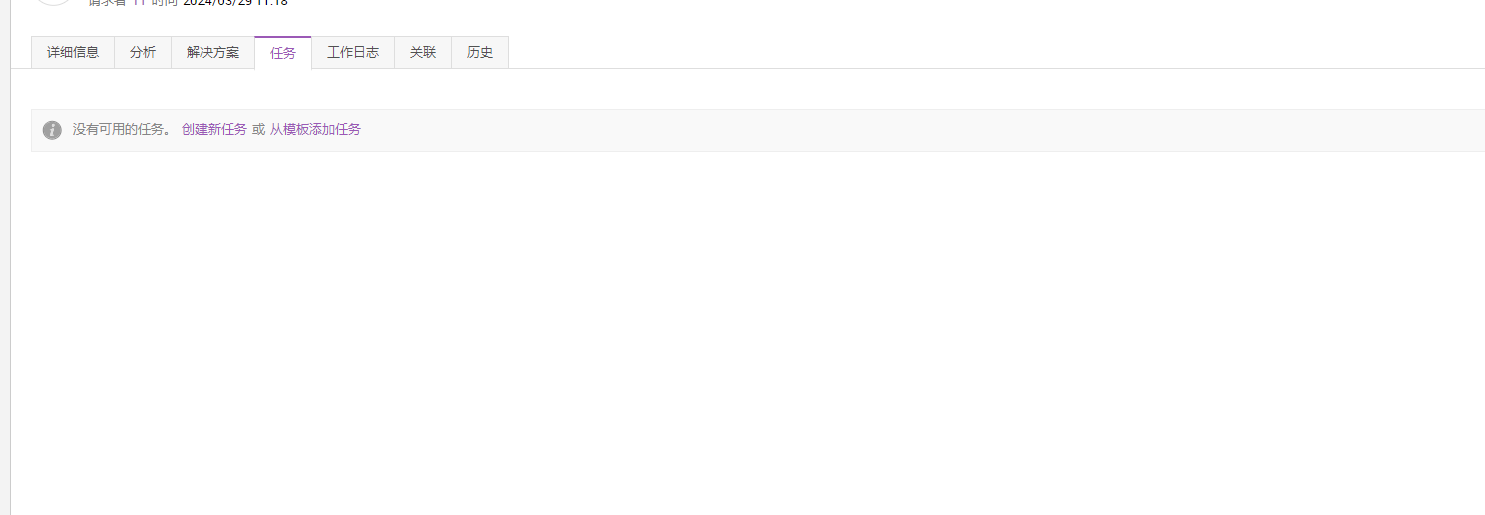 您可以在问题详细信息页面的任务选项卡下创建任务、将任务指派给不同的技术人员并管理与任务相关的活动。
