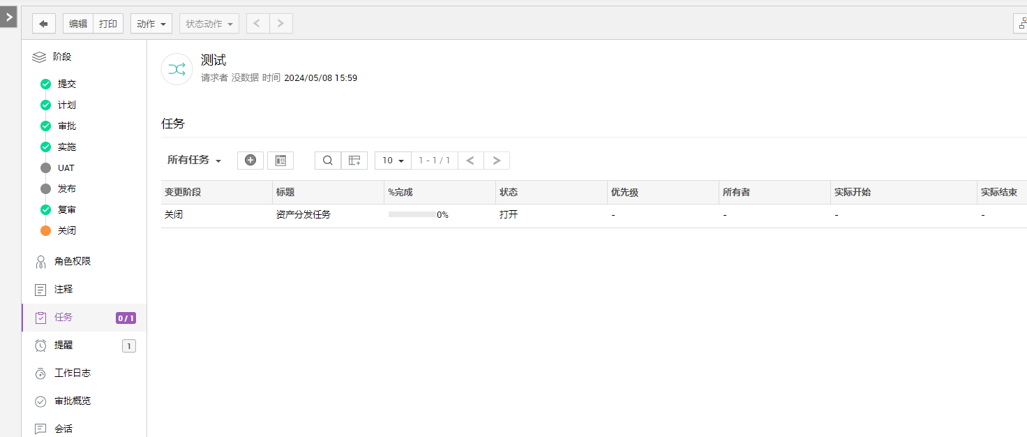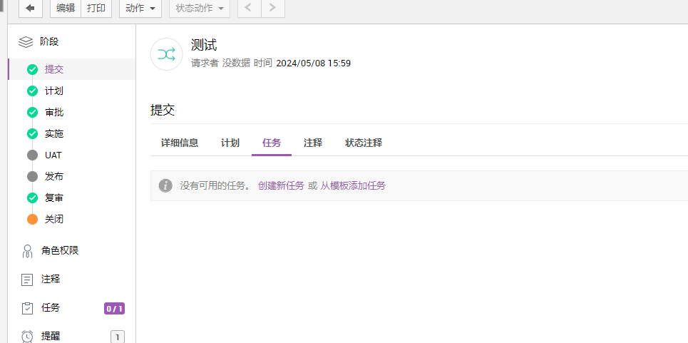 您可以添加和跟踪每个变更阶段的任务。转到变更阶段,选择阶段下的任务子标签。