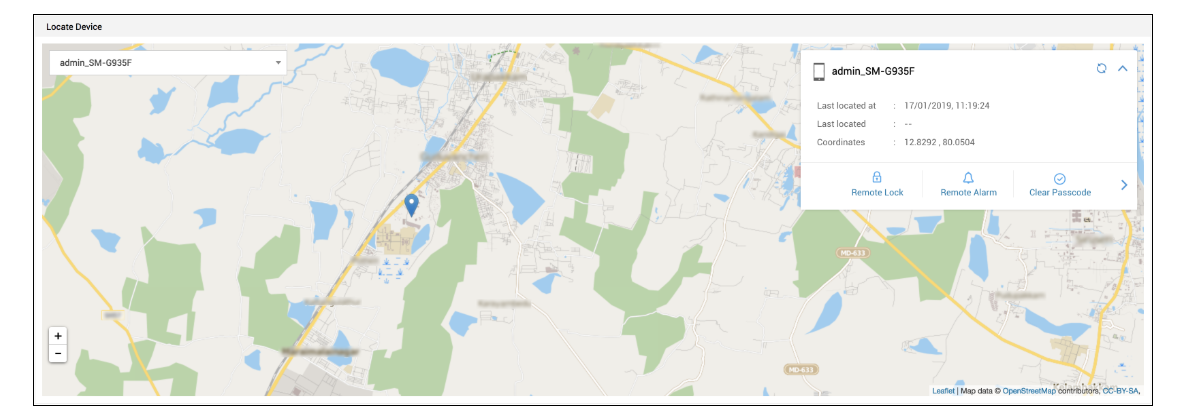 如果设备丢失,用户可以在 ServiceDesk Plus 中提出请求。 技术人员可从请求详细信息页面触发 "定位设备 "操作,以确定设备的地理位置。 设备定位后,您可以执行锁定设备或远程触发警报等操作。