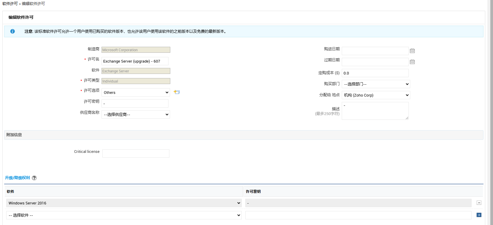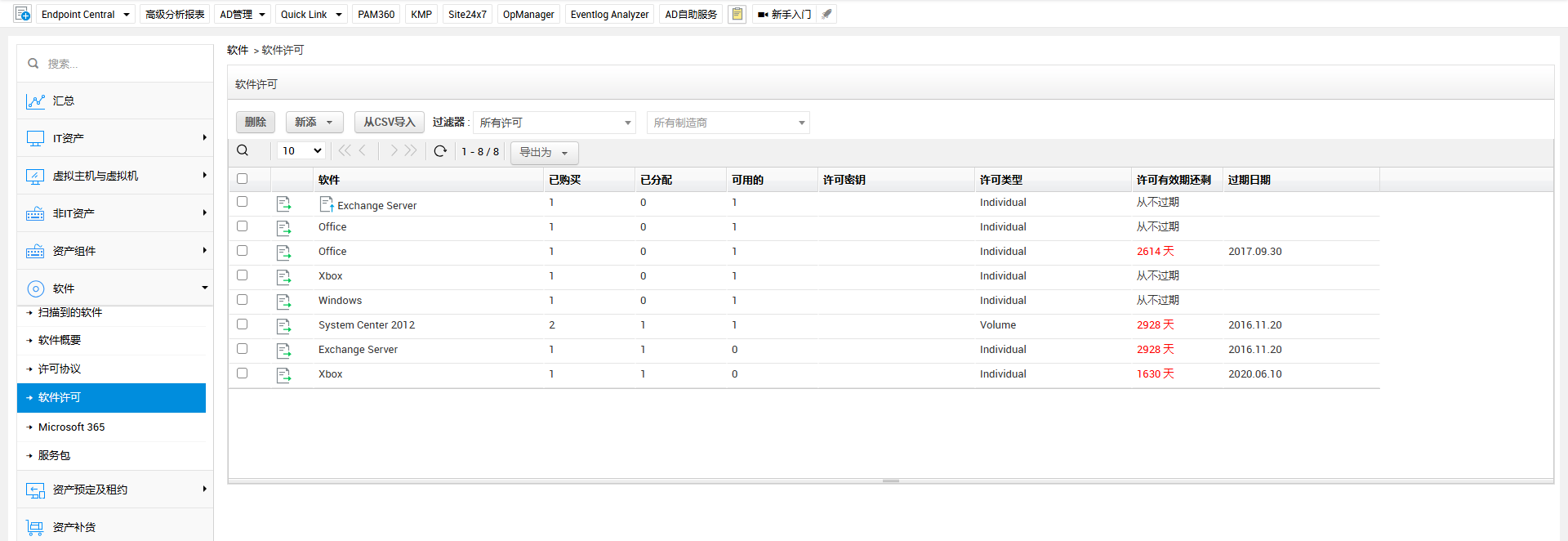 转到资产>>软件>>软件许可证。