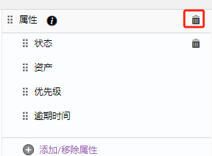 要从属性中删除任何字段,请将鼠标悬停在该字段上,然后单击显示的删除图标。