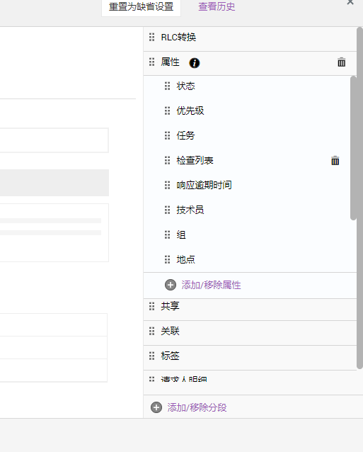 您有两个步骤可供选择:单击属性分段底部显示的添加/移除属性;将光标放在所需的分段上,然后单击、按住并将所需字段从右面板拖到相邻窗格中。