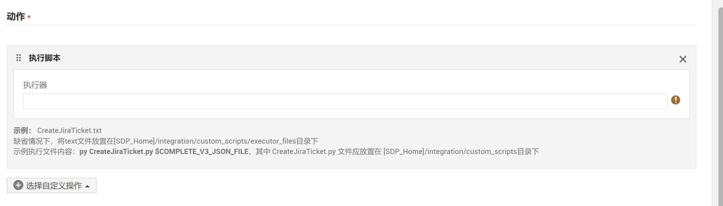 您可以将通知、自定义函数、自定义脚本或webhook配置为自定义动作。