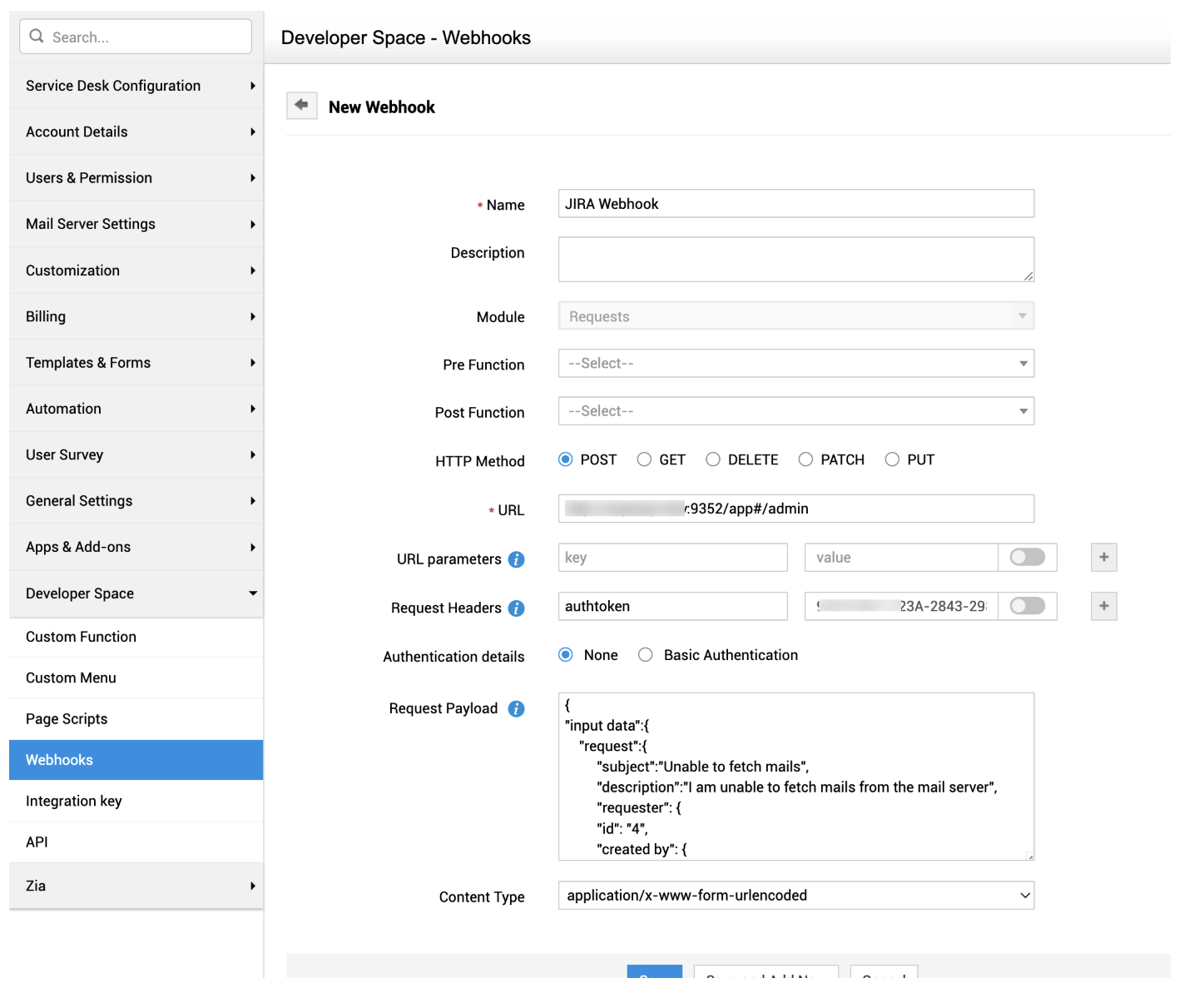webhook允许用户调用外部 URL 或 API,以促进 ServiceDesk Plus 与任何第三方应用程序之间的通信。