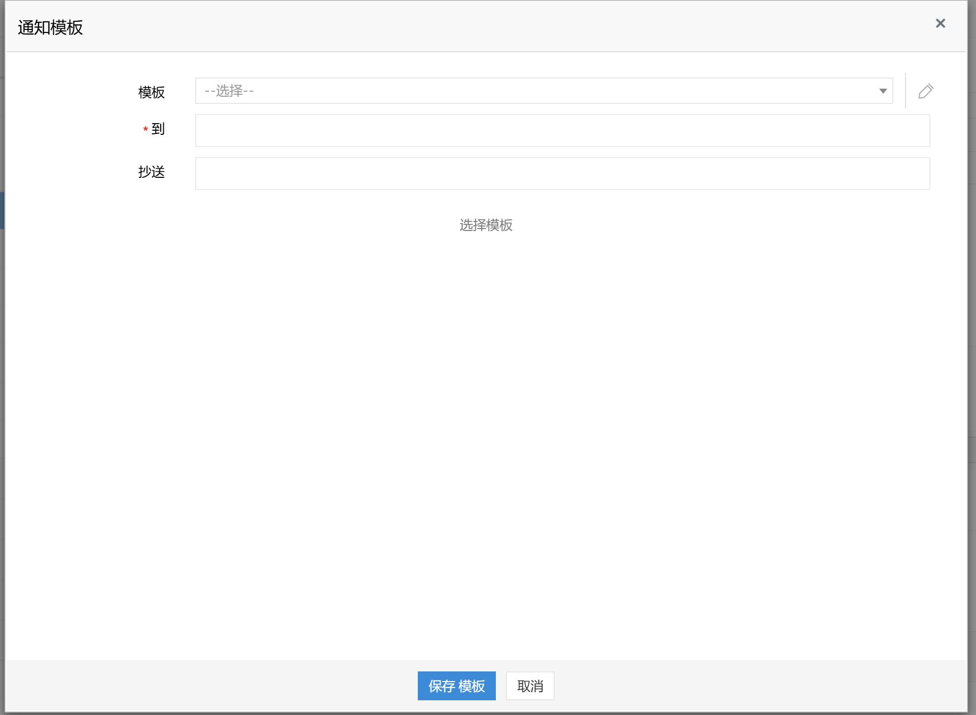 电子邮件通知模板窗口将打开。单击模板字段并选择所需的模板。