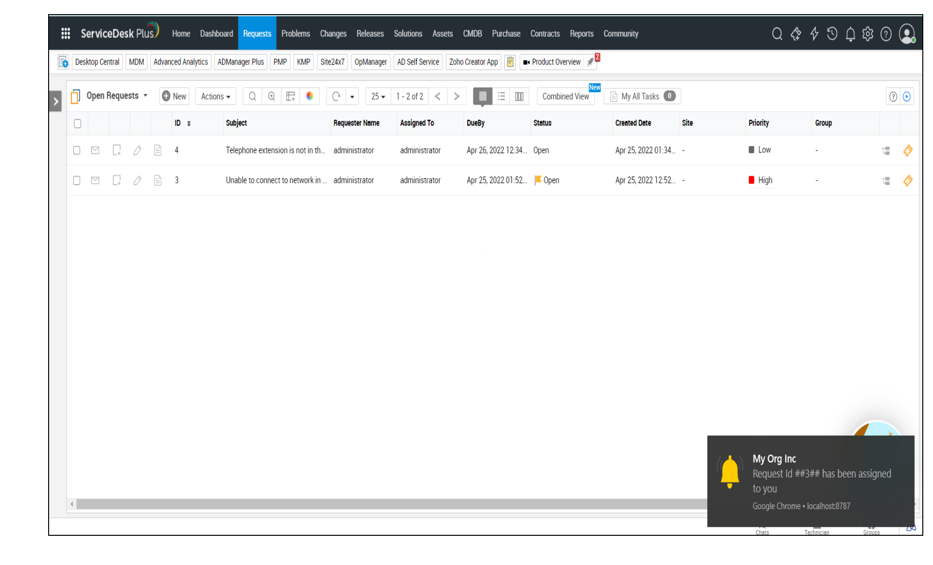 桌面通知向用户提示应用程序中事件的详细信息。桌面通知会在屏幕右下角显示一个小对话框。这有助于用户无缝参与,即使他们在不同的应用程序上工作,也能随时关注更新。