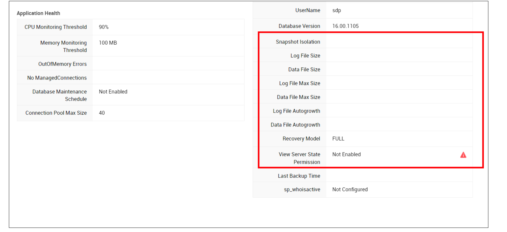 查看服务器状态和查看任何定义: 在健康状况表中查看 MSSQL 服务器的属性。没有此权限的用户将无法查看 MSSQL 服务器的属性。
