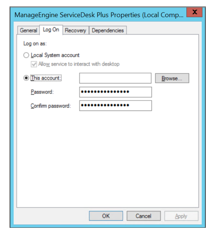 步骤 3:启动 ServiceDesk Plus 服务(作为其他用户):